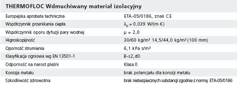 Pierwszym w Europie wdmuchiwanym materiałem izolacyjnym, stosowanym między innymi do ocieplania poddaszy, który może nosić prestiżowy certyfikat jakości natureplus®, jest właśnie celulozowy materiał izolacyjny Thermofloc. Jego niekwestionowane właściwości zdrowotne, techniczne i ekologiczne zostały potwierdzone przez niezależnych specjalistów z Międzynarodowego Stowarzyszenia na rzecz Zrównoważonego Budownictwa i Mieszkania. Takie wyróżnienie może otrzymać jedynie solidny wyrób, którego tworzą w co najmniej 85% surowce odnawialne. Naukowo dowiedziono ich pozytywne działanie na klimat pomieszczeń. Dzięki temu można zapobiec emitowaniu gazów cieplarnianych do atmosfery, a przy tym zmniejszyć eksploatację kopalnych nośników energii. Poza tym dokładne przestrzeganie wartości granicznych daje pewność, że Thermofloc nie przyczynia się do żadnych chorób i nie pogarsza samopoczucia. Pieczęć jakości dodatkowo potwierdza pierwszorzędną użyteczność oraz trwałość tego materiału stosowanego z powodzeniem m.in. do docieplania poddaszy.
